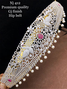 Pink Ruby Stone Studded Premium Quality Gold Jewellery Finish Hip Belt with Pearls Hanging for Women