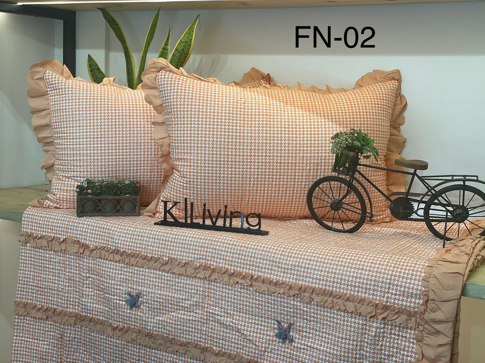 FUSION, ORANGE COLOR  BED COVER WITH FRILLS AND HANDMADE FLOWERS -PREETF001O