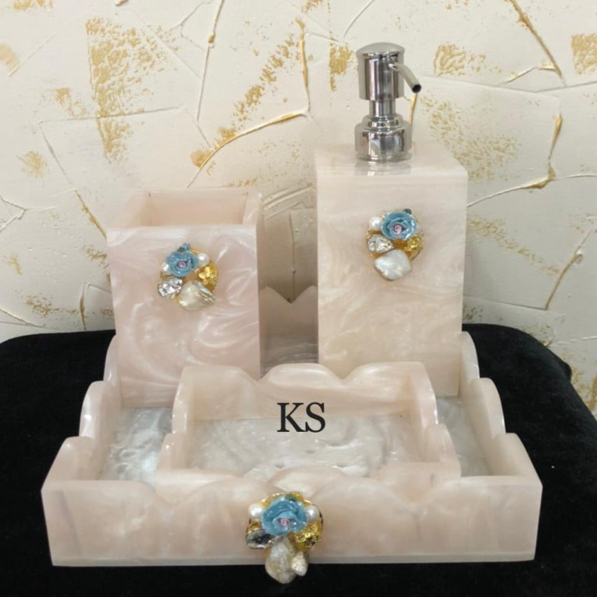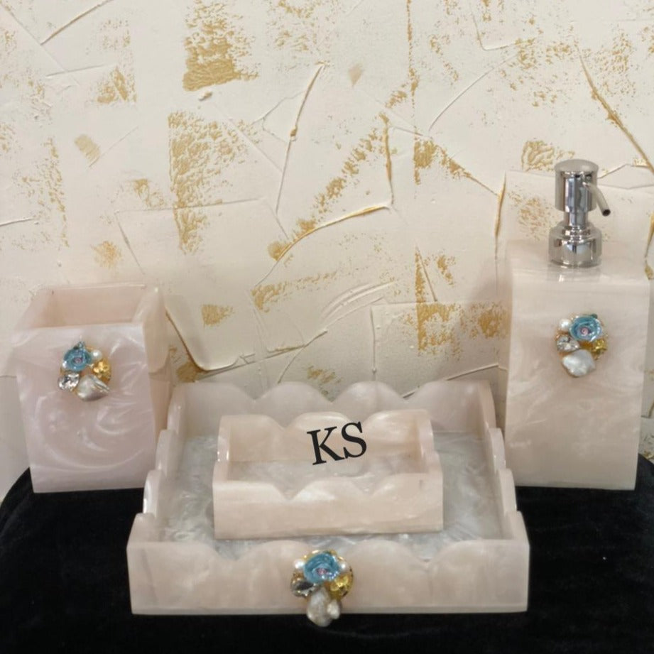 White Resin Bathroom Set with Brooch-SKDBS001W