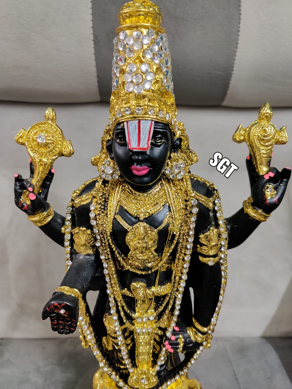 SHREE BALAJI , IMPRESSIVE GOLD PLATED BLACK LORD BALAJI IDOL -SILVI001BI