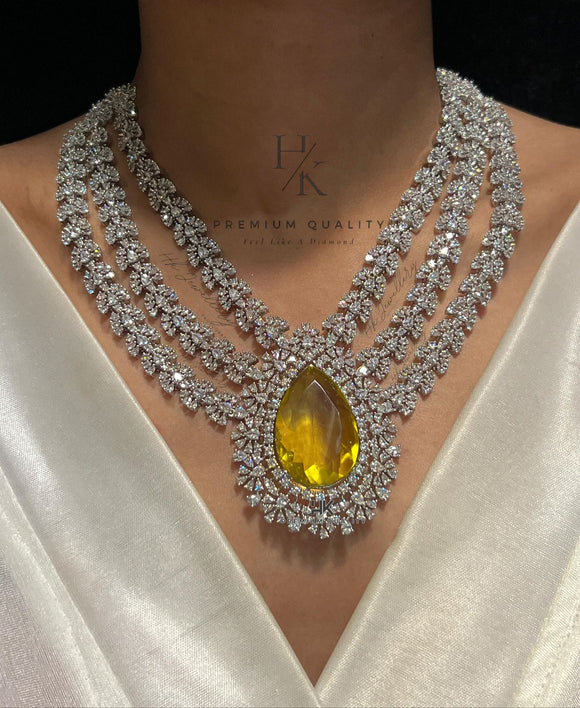 Marie , Platinum Finish Yellow stone studded Diamond Replica Necklace Set for Women -JAID001YS
