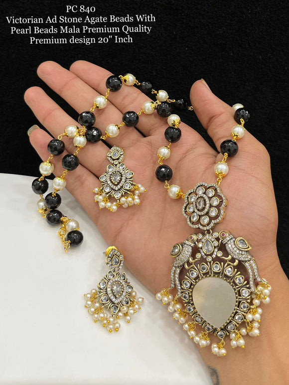 Victorian American Diamond Stone and Agate Beads with Pearl Mala - SAY001PMB