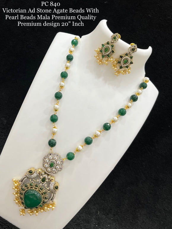 Victorian American Diamond Stone and Agate Beads with Pearl Mala - SAY001PM