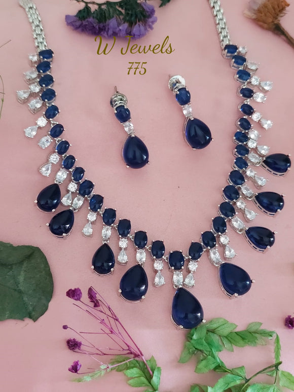 Nancy , elegant Platinum Finish Deep Blue stone necklace set for women -SONA001BNS