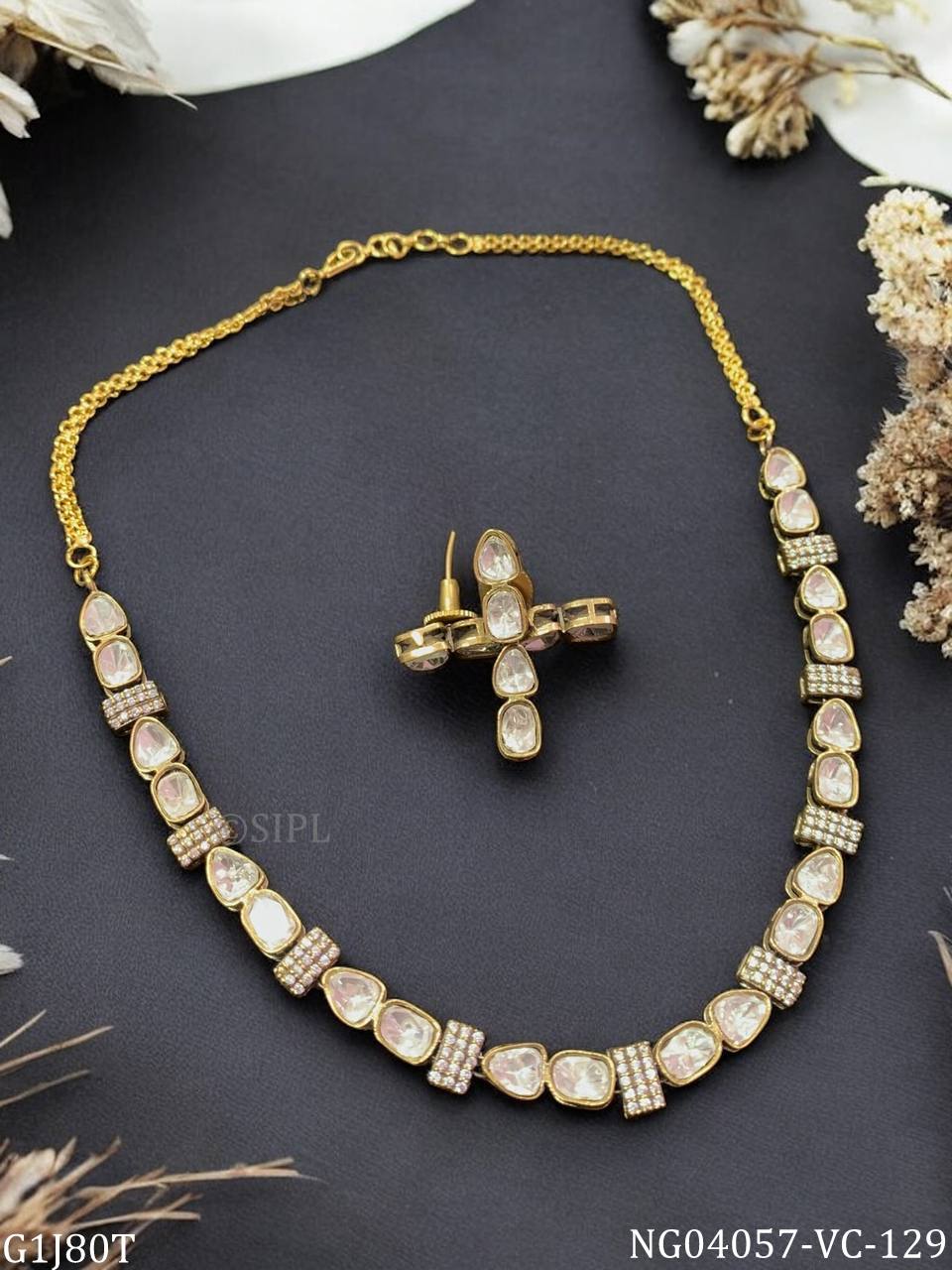 Kajole presents a sophisticated Victorian-finish kundan necklace set, meticulously crafted for the discerning woman. This elegant ensemble features traditional kundan work—a centuries-old Indian jewelry technique—combined with Victorian design sensibilities for a timeless aesthetic. The set includes coordinated pieces that work harmoniously together, making it ideal for weddings, festivals, or special occasions. Kundan's lustrous gemstone setting and intricate detailing ensure each piece commands attention while maintaining refined elegance. Perfect for those who appreciate heritage craftsmanship with contemporary styling.