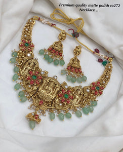 Varnika , elegant Matt Gold Stone Studded Necklace Set for Women -SHAKI001NS