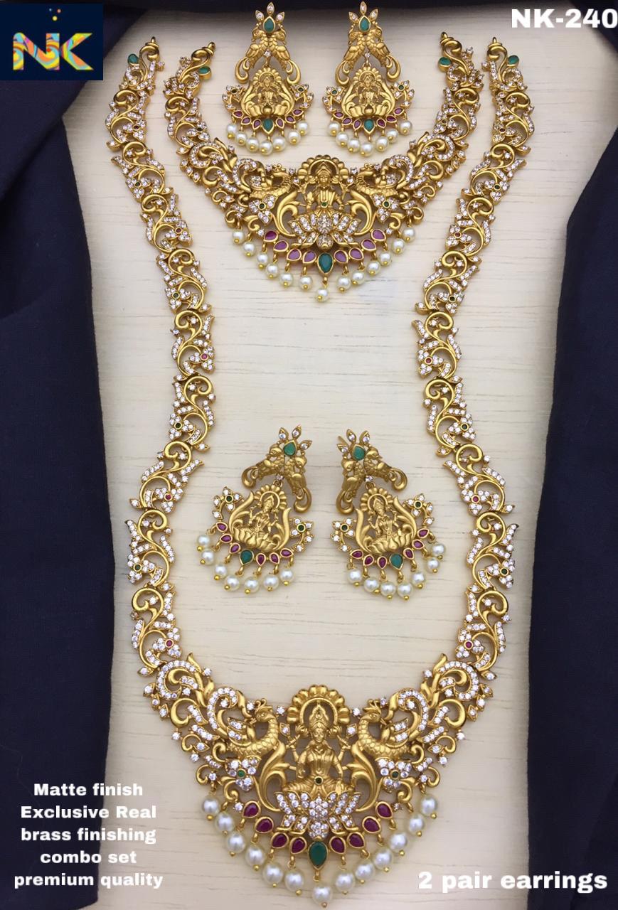 PREMIUM QUALITY REAL BRASS FINISH NECKLACE COMBO WITH 2 PAIR OF MATCHING EARRINGS-SAYDNK240