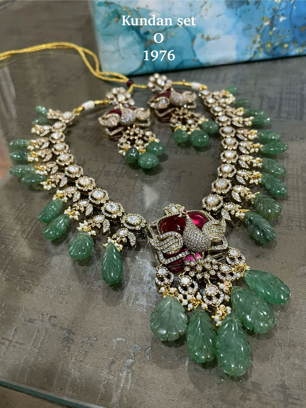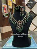 Vismaya ,Peacock Design Natural Emarald Carving Stone Beads Hanging Necklace Set for Women -JAYDU001PN