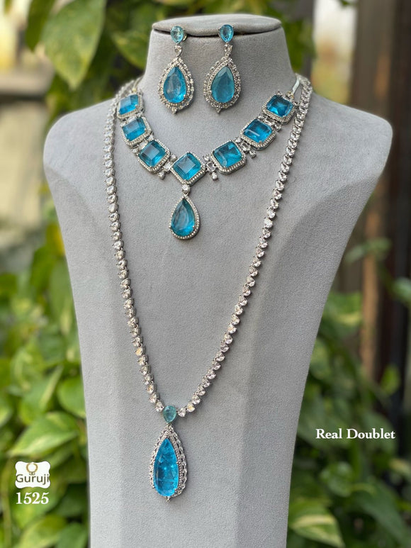Blue Daisy, Elegant Platinum finish Double Layered Necklace set for women -SANY001DNB