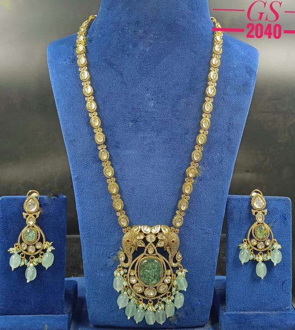 DIANA GREEN , ELEGANT JADE GREEN STONE STUDDED DESIGNER NECKLACE SET FOR WOMEN -SANDY001G