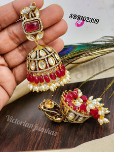 The Soundarya Jumka features a stunning Victorian Style Kundan Gold Finish, perfect for the modern woman.