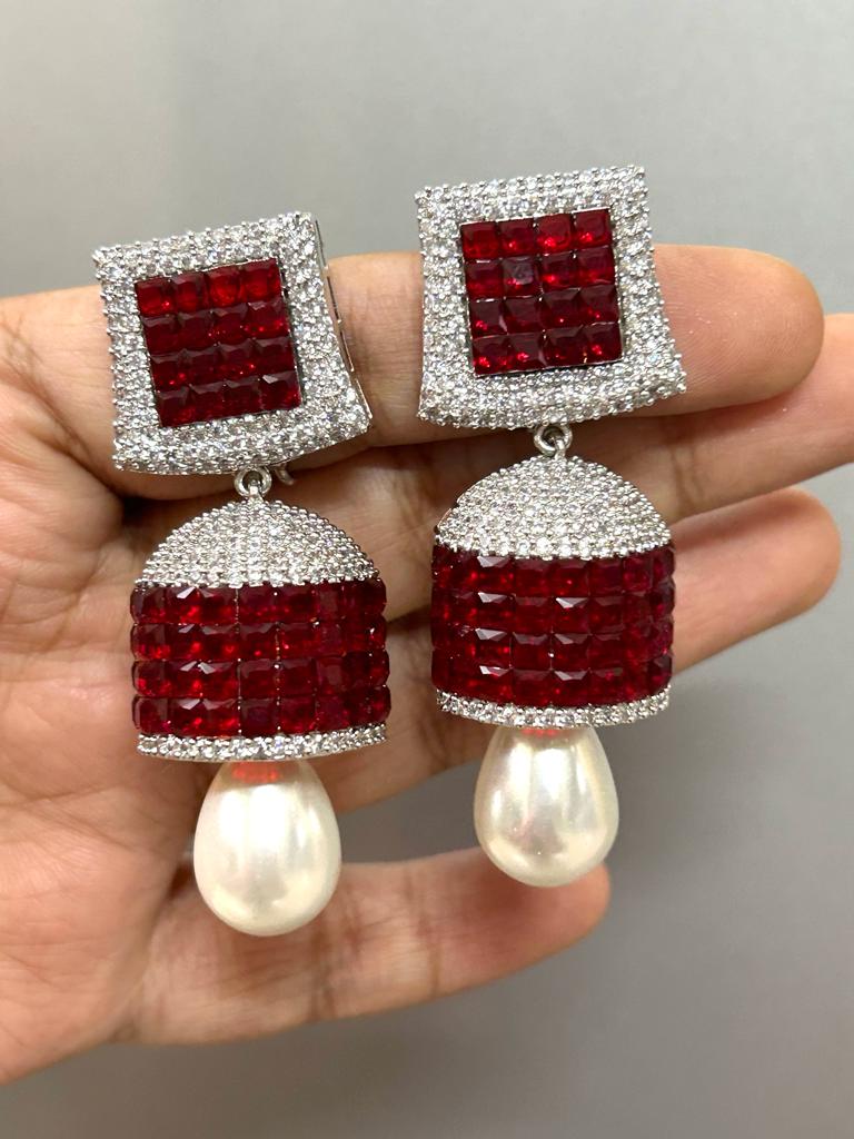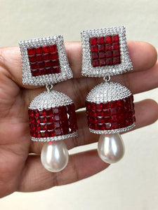 Red Ruby and White stone studded Diamond Invisible stone Setting Jumka for Women-SANDY001IJWRR