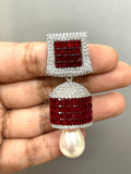 Red Ruby  and White stone studded Diamond Invisible stone  Setting Jumka for Women-SANDY001IJWRR