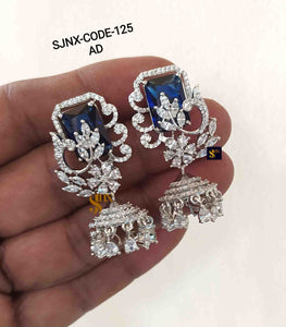 Blue stone studded American Diamond Jumka for women -SHYAM001BJ