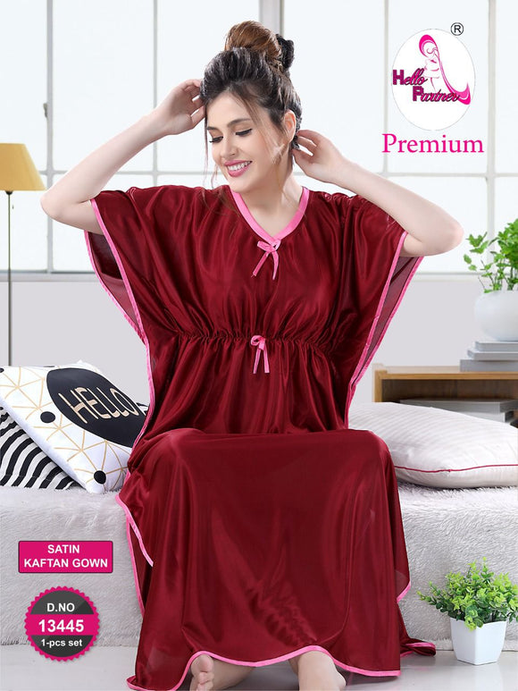 MAROON BEAUTIFUL SOFT SATIN GOWN KAFTAN FOR WOMEN -IQF001KWM