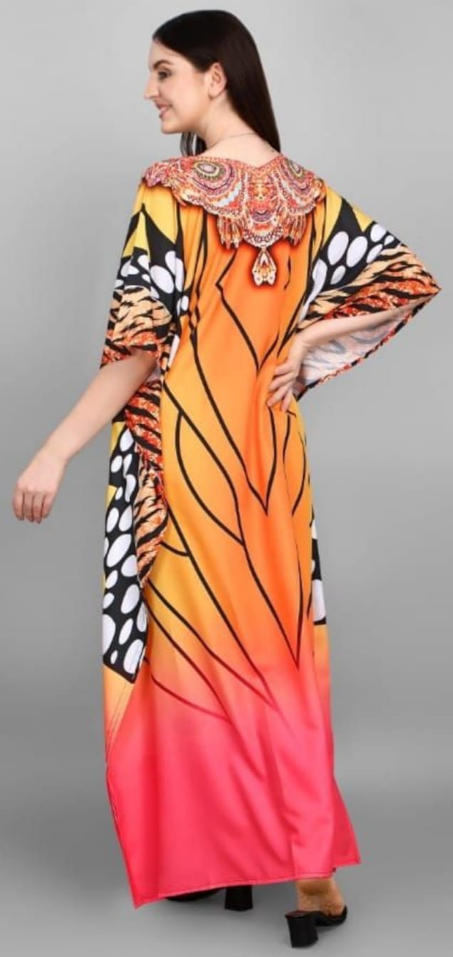 ELEGANT BUTTERFLY INSPIRED ORANGE CREPE KAFTAN FOR WOMEN -RYKW001O