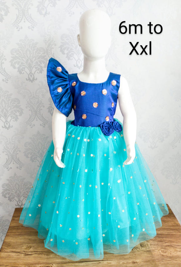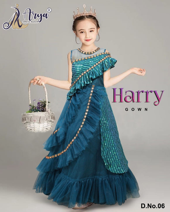 Teal Blue shade Harry Party Wear Gown For Kids-ARYA001BT
