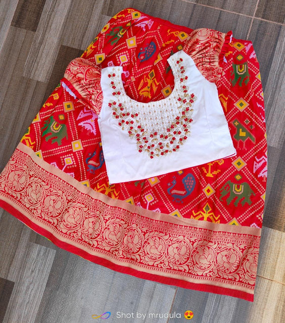 RED AND WHITE BANARASI SKIRT AND TOP FOR KIDS-SRI001RW