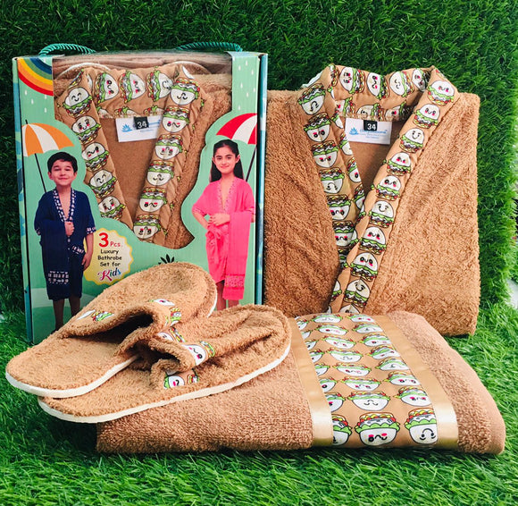 Brown 3 pcs Luxury Kids Bathrobe set -PANIPBRS001BR