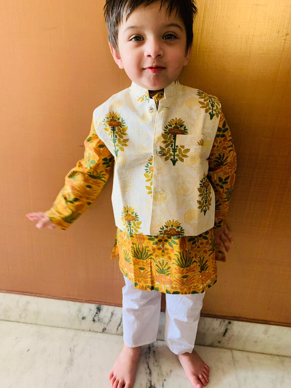Designer Kurta Pyjamas with waist Coat-PANKKP001Y