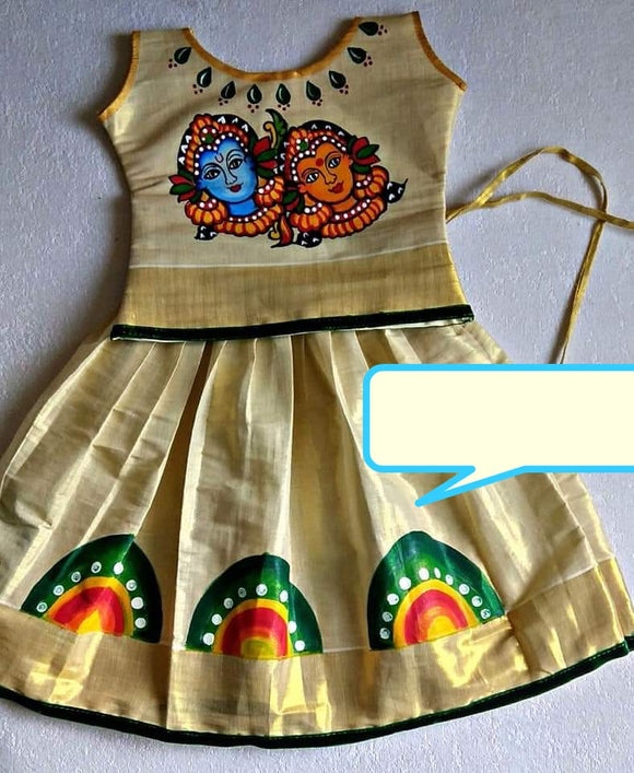 RADHE SHYAM MURAL DESIGN BLOUSE & MURAL DESIGN PATTU PAVADA SET FOR GIRLS-CFRMPPG0018