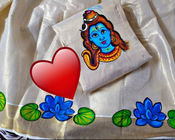 LORD SHIVA MURAL DESIGN BLOUSE & PATTU PAVADA SET FOR GIRLS-CFRMPPG009
