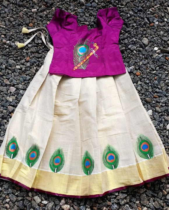Beautiful South Style Kerala Pattu Pavada with Lining for Girls-SAHEL001PPC