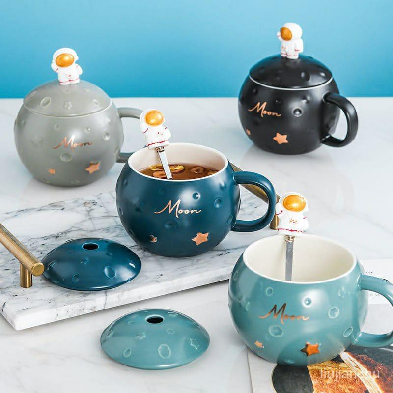 ASTRONAUT DESIGNER CERAMIC MUG WITH SPOON -ANUB001AC