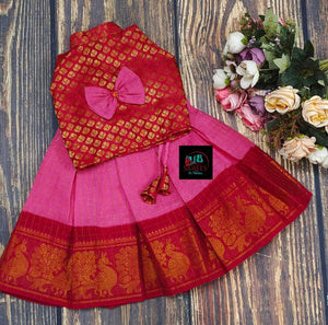 PINK AND RED SANGUDI COTTON SKIRT WITH BROCADE TOP AND BOW -SRI001SSBPR