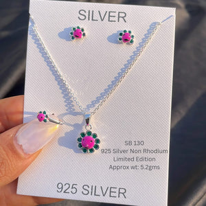 Cute Flower  enamelled  Designer 92.5 Silver Pendant earrings and chain with Finger Ring for Kids-AR001CF