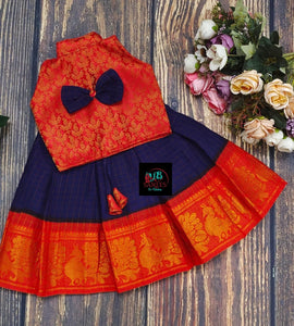 RED AND BLUE SANGUDI COTTON SKIRT WITH BROCADE TOP AND BOW -SRI001SSRB