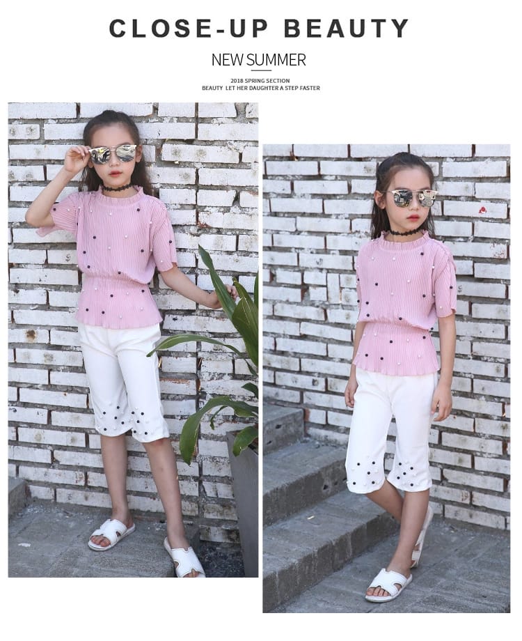Crush material top and Capri studded with pearls for girls-SKDGF0011
