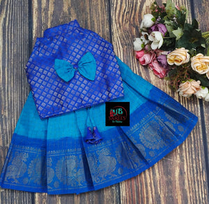 HAPPY BLUE AND DARK BLUE SANGUDI COTTON SKIRT WITH BROCADE TOP AND BOW -SRI001SSHB