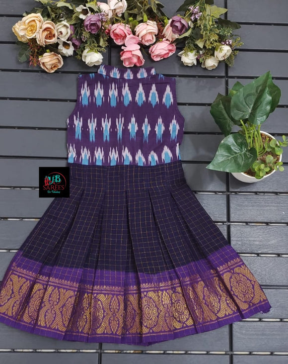 PURPLE SHADE DESIGNER SUNGUDI FROCK WITH IKAT FUSION -SRI001ISFP
