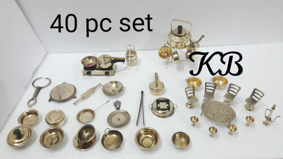 40 PCS SET BRASS MINATURE KITCHEN TOY SET FOR KIDS-GANNUTS00140
