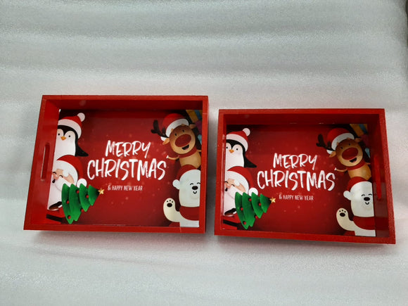 RED COLOR CHRISTMAS SET OF 2 ,TRAYS FOR THIS CHRISTMAS-PHCT001