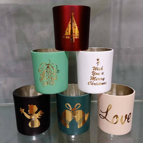 SET OF 5 , CHRISTMAS GLASS VOTIVES WITH TEA LIGHT CANDLES-PHGV001