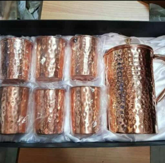 COPPER JUG AND 6 GLASSES SET -BICS001