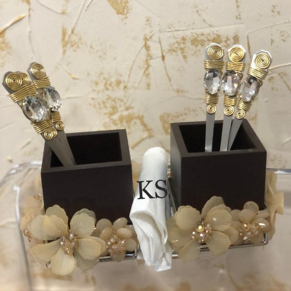 Elegant Golden Finish Cutlery Set with Stand-PRIYA001GS