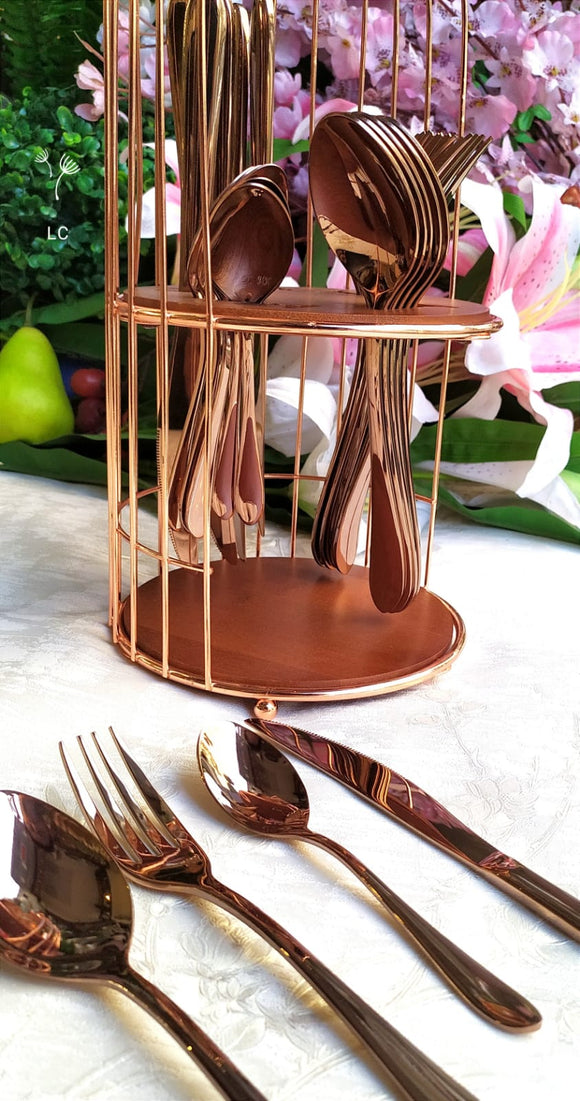 Elegant Rose Gold Finish Cutlery Set with Stand-PRIYA001RG