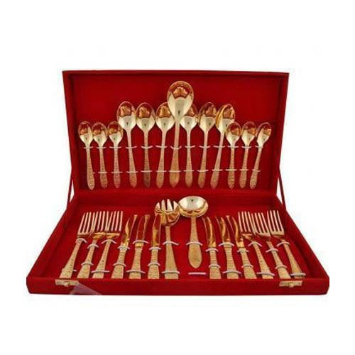 Elegant Golden Finish Cutlery Set with Stand-PRIYA001GS