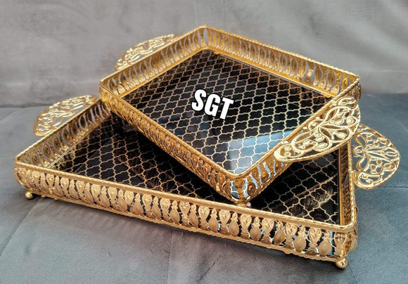 Set of 2 Golden Trays for Weddings and Special Occassions-DEEP001T