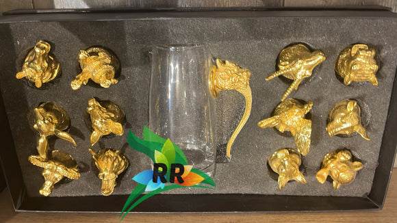 Golden Zodiac Shot Glasses with flask jug-SKD001GSC