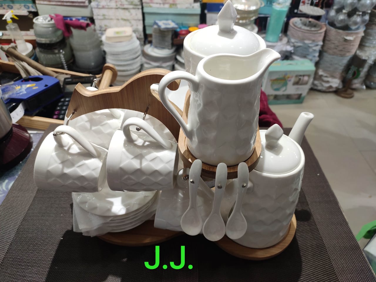 Modern British style coffee/tea set comes with Bamboo wooden stand to make it a decorative piece for your home!!