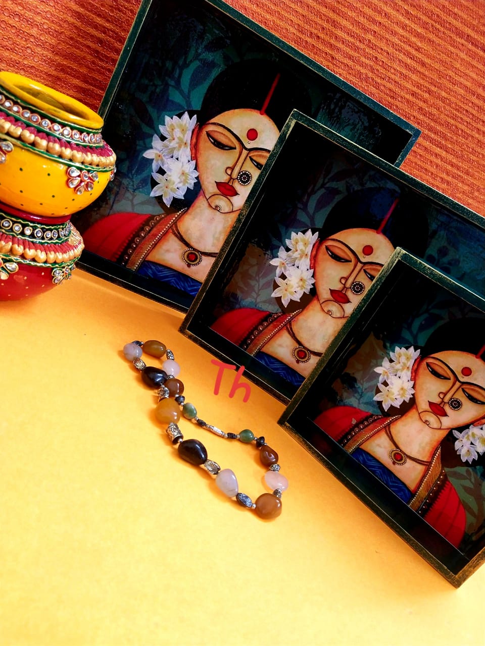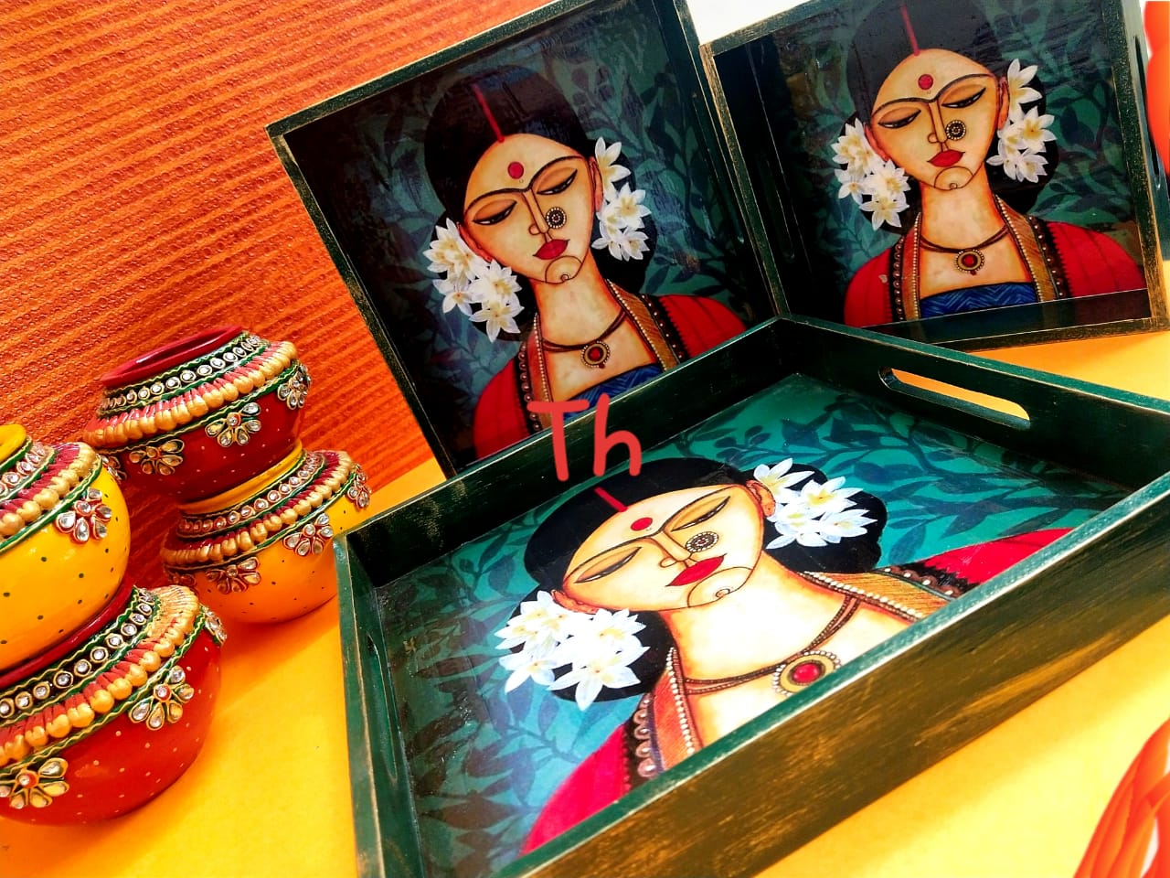 THE MOGRA LADY , SET OF 3 BEAUTIFUL TRAYS -PALT001