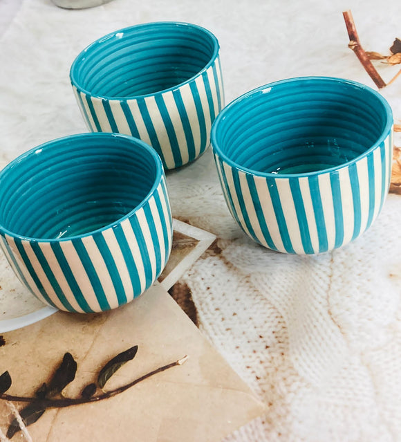 Blue and White Stripes Design Ceramic Bowls Set of 3 -LR001BS