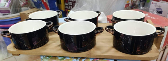 BLACK BEAUTY,SET OF 6 SOUP BOWLS WITH SPOONS AND WOODEN TRAY - SKDSBS001