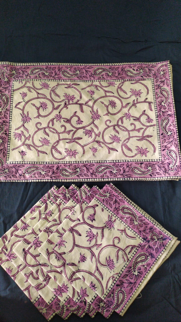 GREY DESIGN HAND MADE BLOCK PRINT MAT AND NAPKIN (SET OF 12) pcs -RGM0010