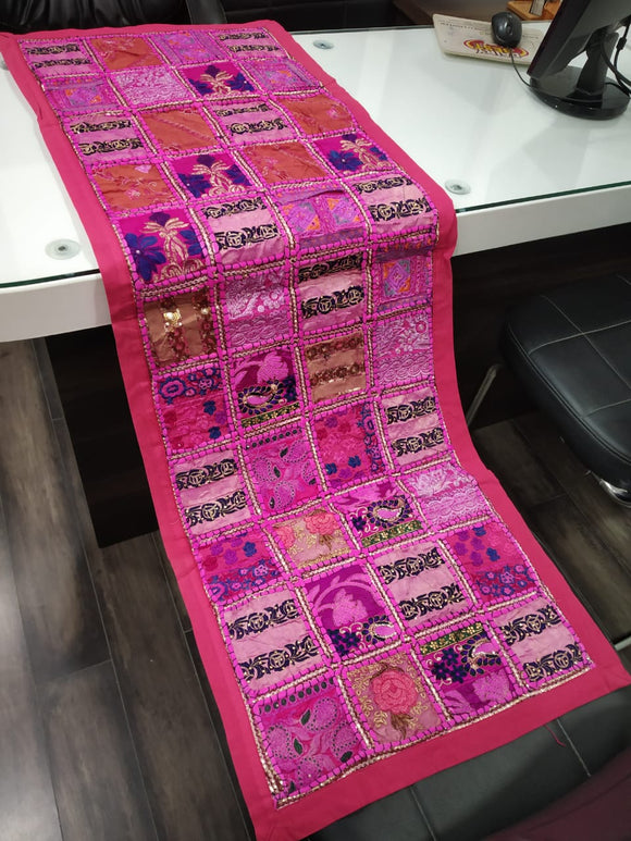 Magenta Pink Color Handmade Banjara Embroidered Table & Bed Runner -PALTR001MP