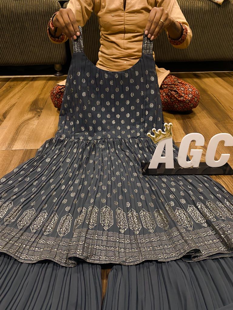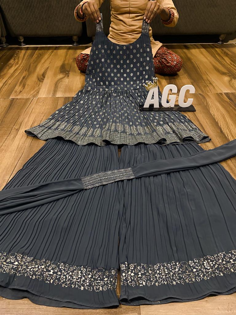 Grey shade Georgette Kurta Sharara for women -FOF001KSGR